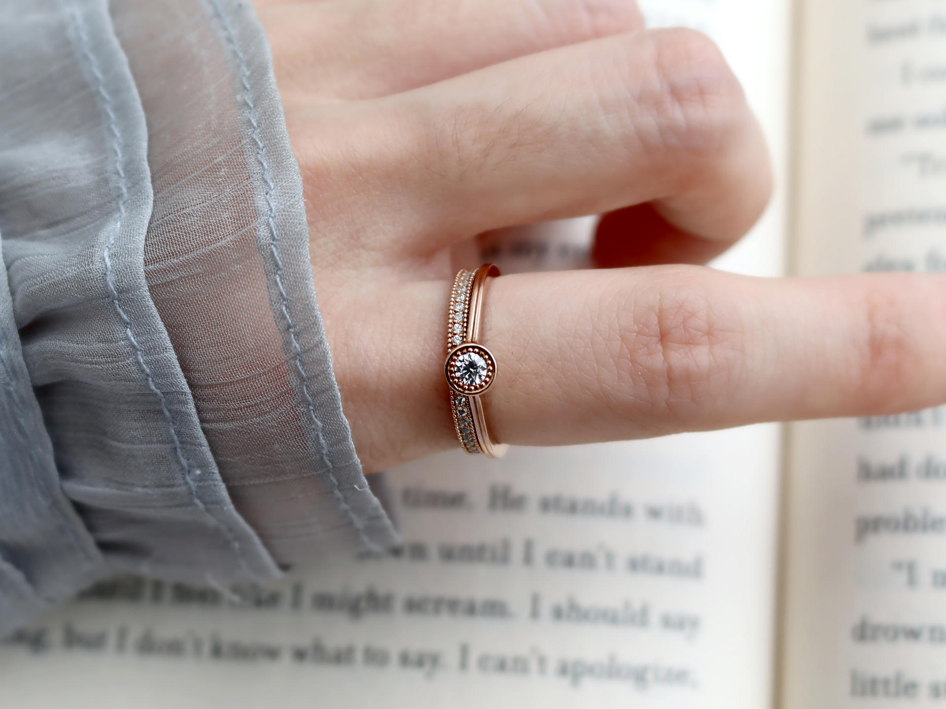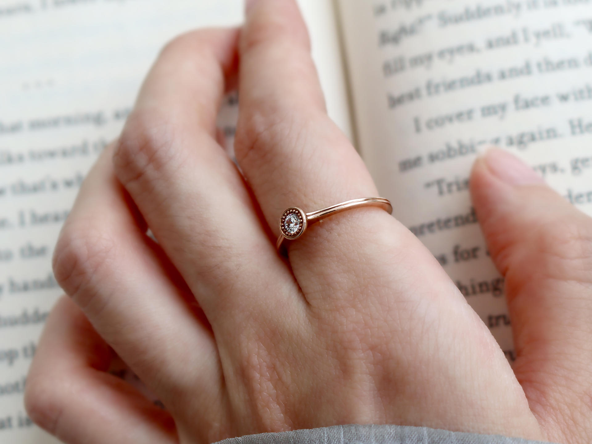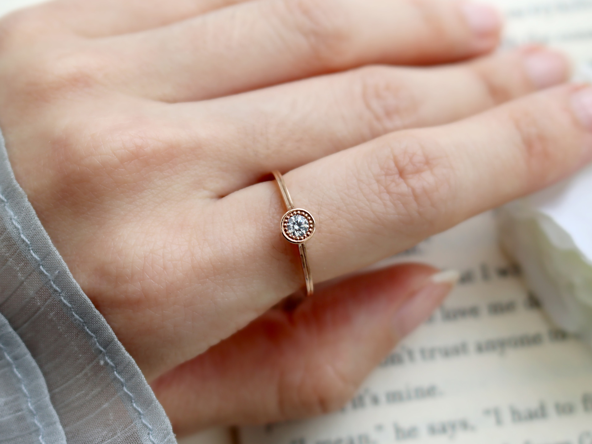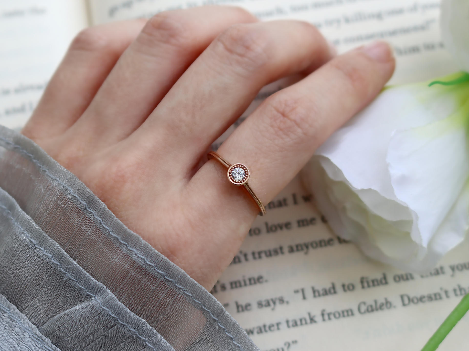 메인 0.10ct 다이아몬드 옆에 촘촘한 로레트 기법이 세팅되어 잔잔하게 빛을 더해줍니다.