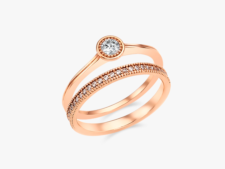 메인 0.10ct 다이아몬드 옆에 촘촘한 로레트 기법이 세팅되어