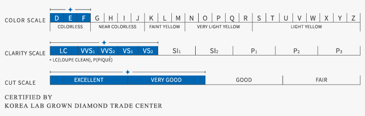최상의 Excellent컷, D-F등급의 투명한 컬러,