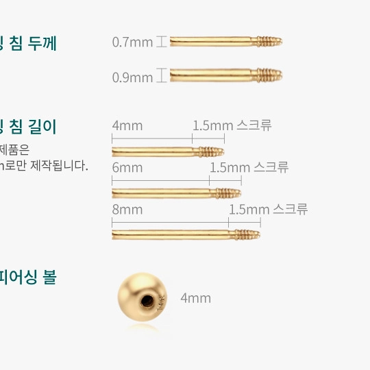 | 침 길이 : 4mm / 6mm / 8mm (+1.5mm 스크류) | |