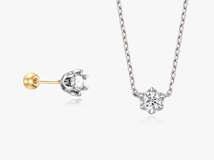 섬세한 6프롱 세팅과 별을 닮은 금속면이 전하는