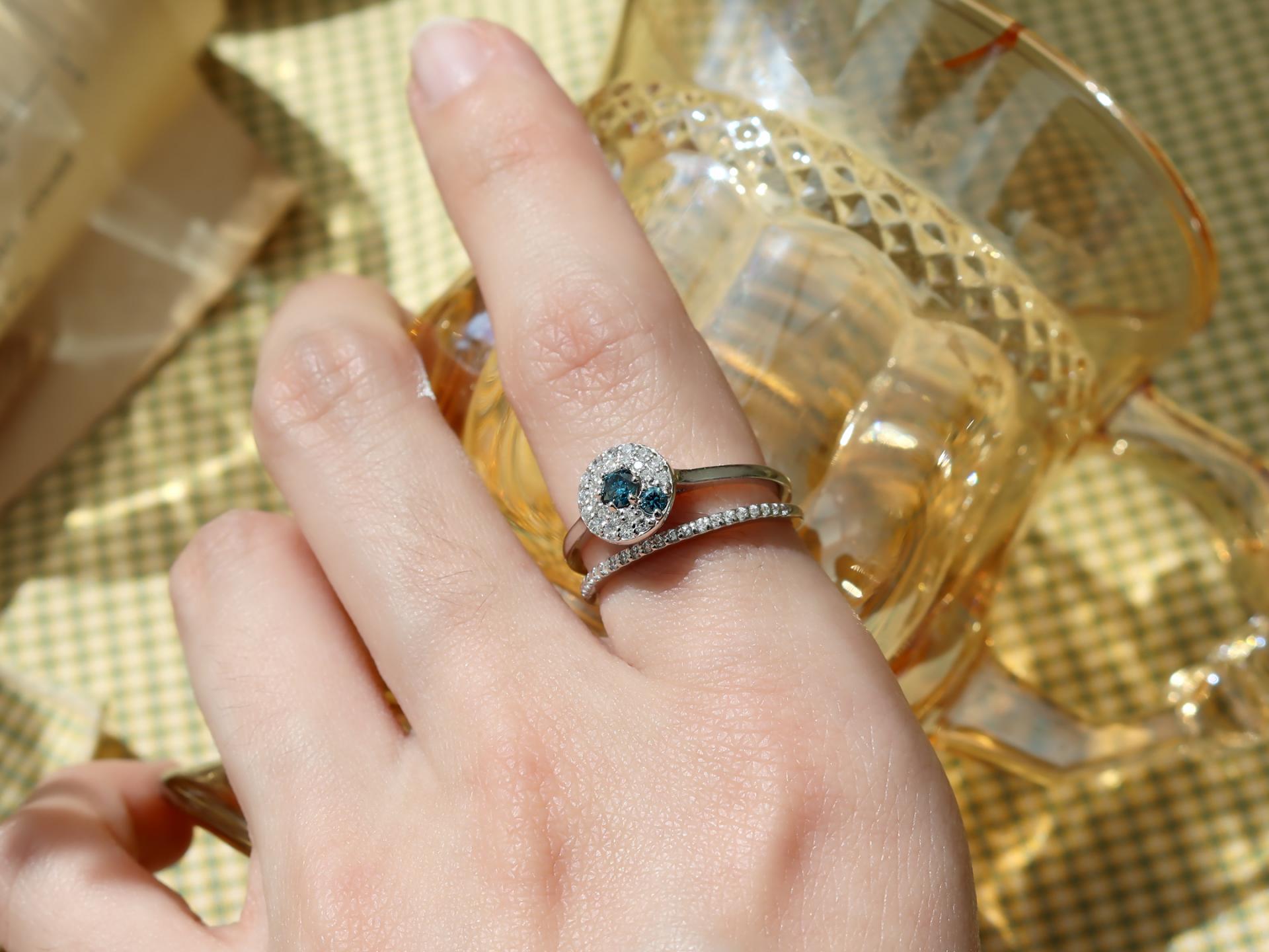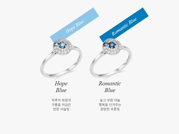 블루 다이아몬드와 투명한 다이아몬드 빛의 조화가