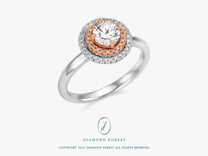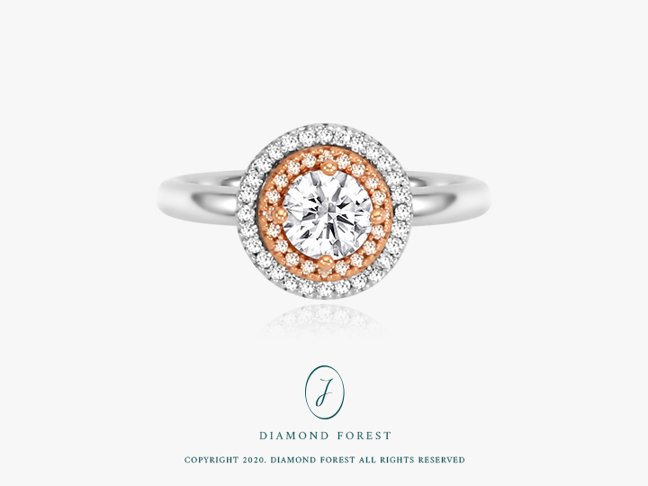 메인 0.50ct 다이아몬드 주변으로, 헤일로 세팅된 48개의 작은 다이아몬드가