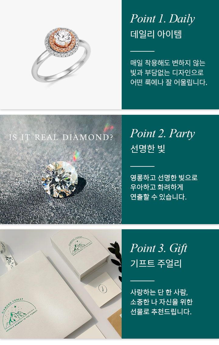 다이아몬드 포레스트의 다이아몬드는 최상의 Excellent컷, D-F등급의 투명한 컬러,